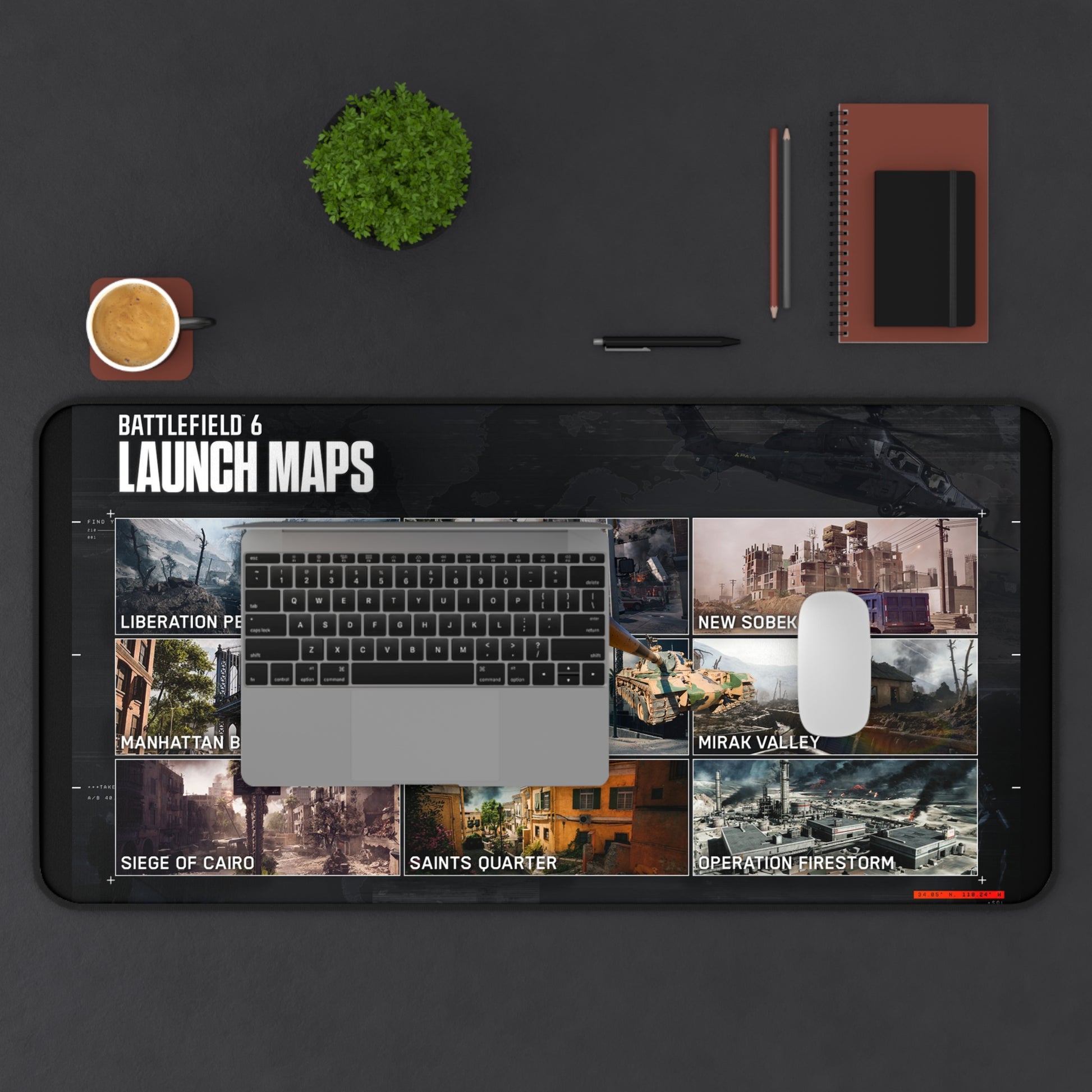 Battlefield 6 Inspired Desk Mat - Gaming Mouse Pad with Launch Maps Design