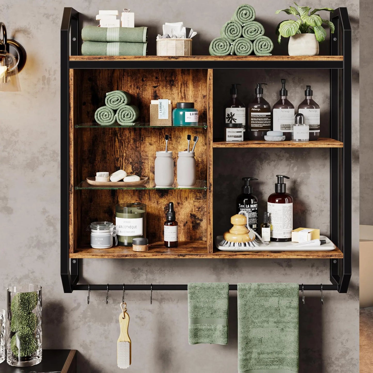 Special Feature | Height Adjustable Glass shelves, Towel Bar, USB Port and Remote, 8 S-Hooks, LED Lights |