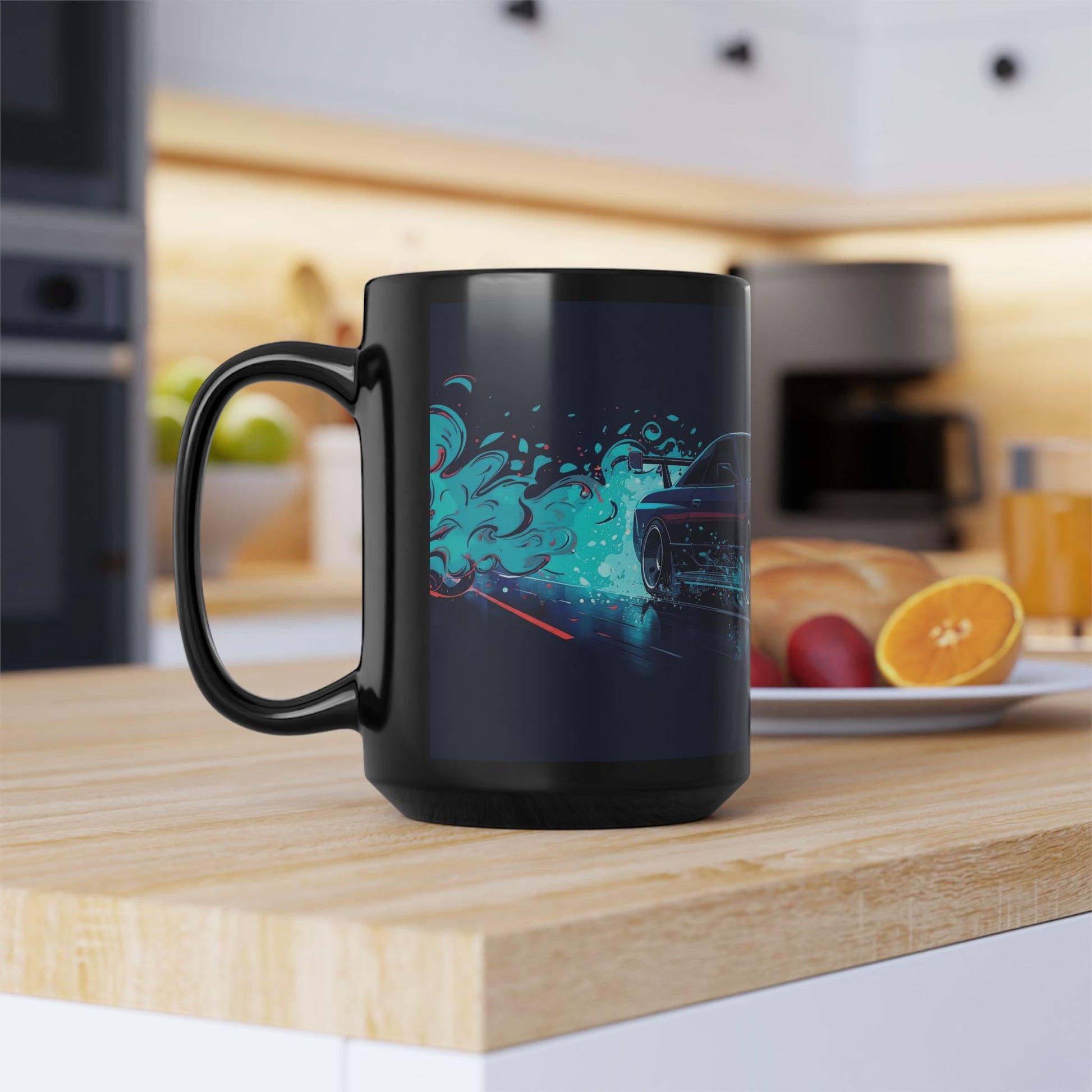 JDM Drift Racing 15oz Black Mug — Blue Smoke Design